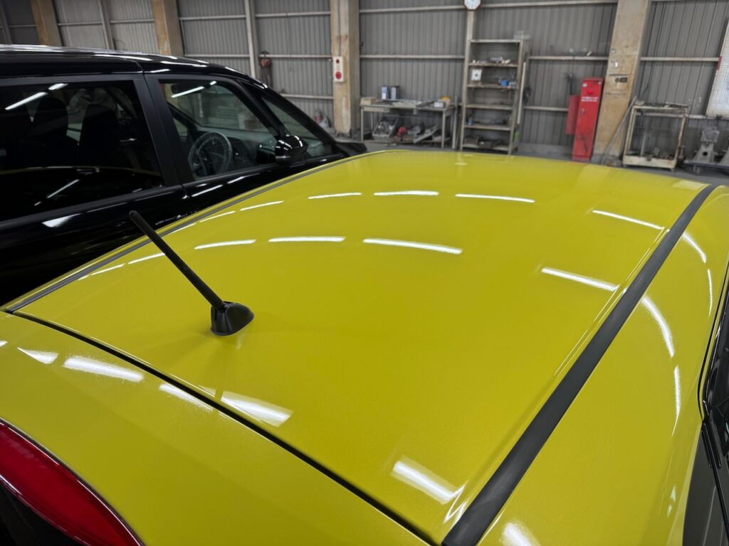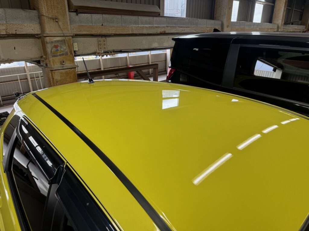 ルーフパネルの凹み傷は 鈑金修理にて対応しました。