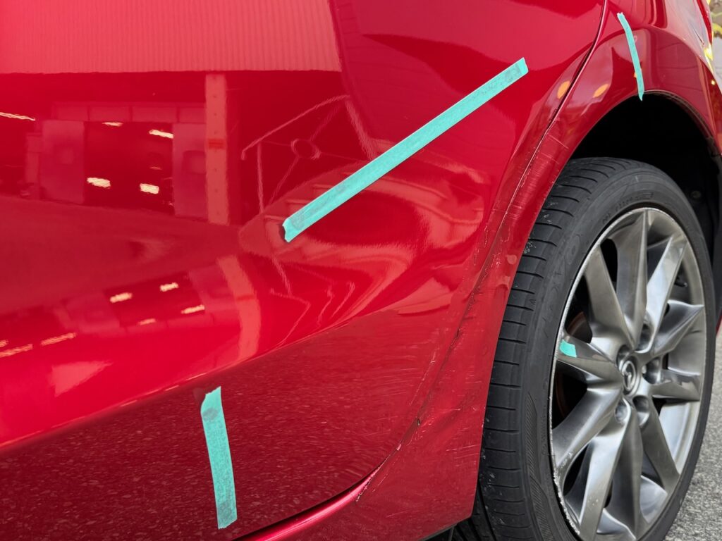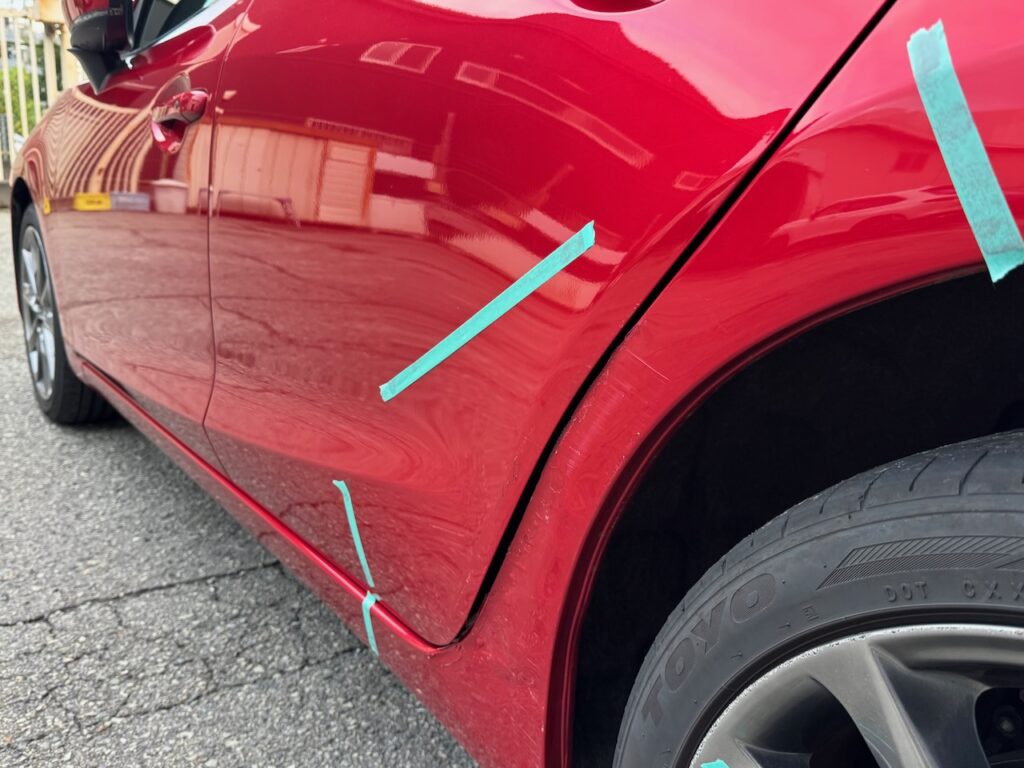茨木市のお客様 マツダ アクセラ 左リアドア 左リアフェンダー 修理のご依頼をいただきました。
