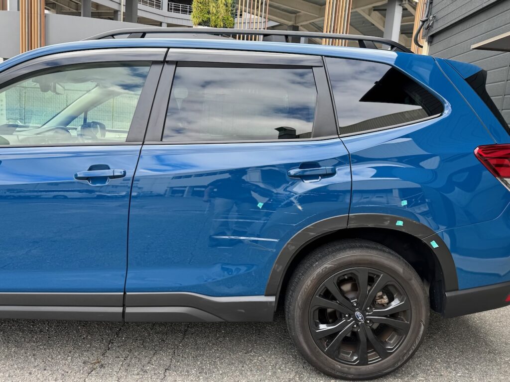 茨木市のお客様 スバル フォレスター 左リアドア 左リアフェンダー 修理のご依頼をいただきました。