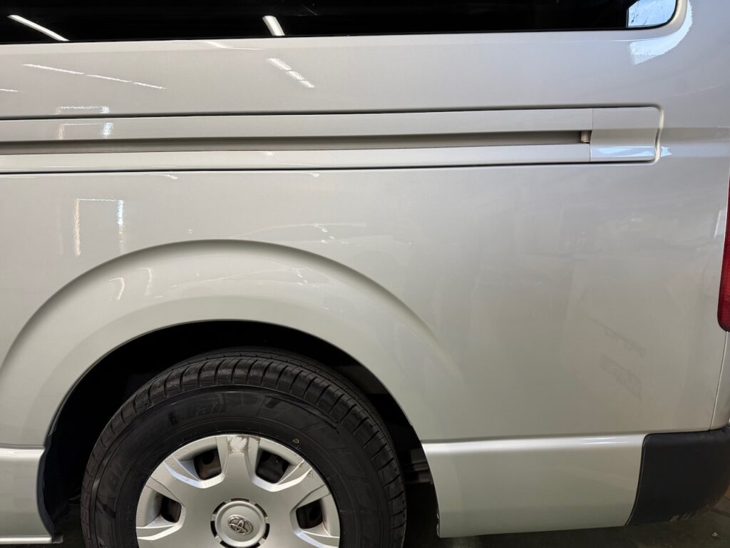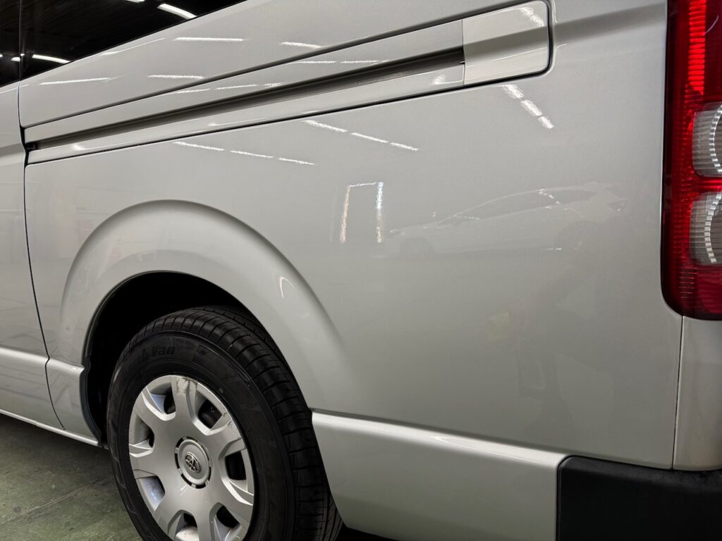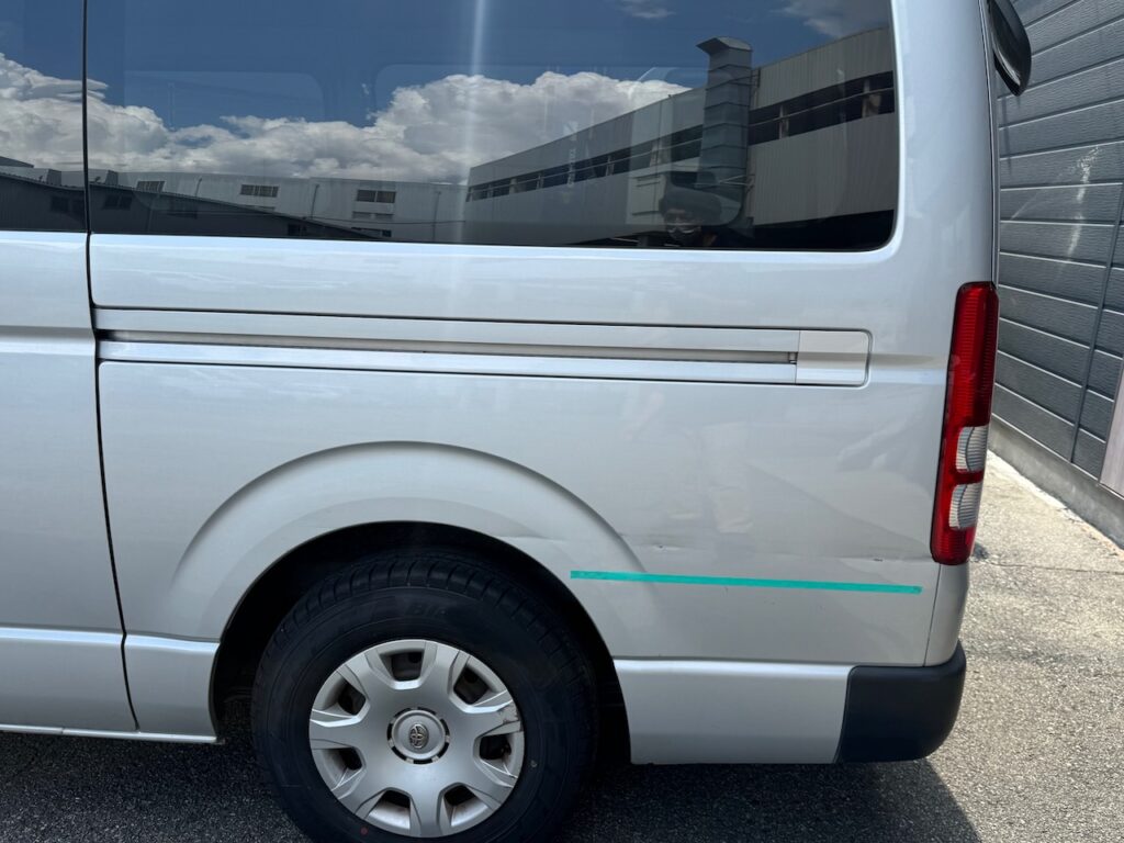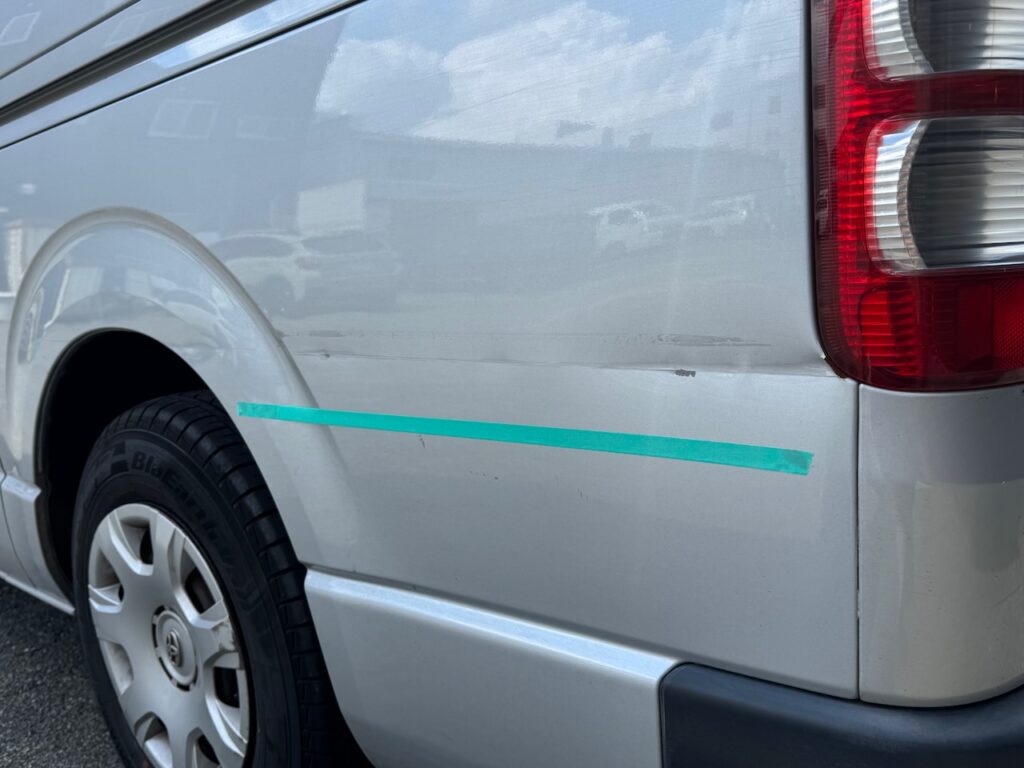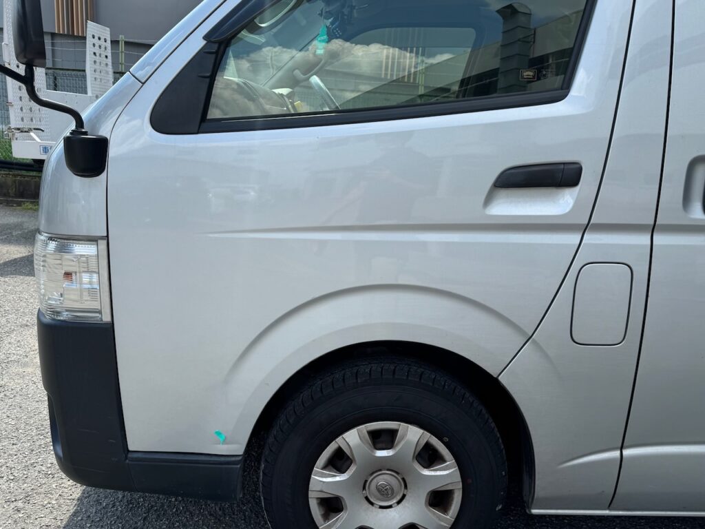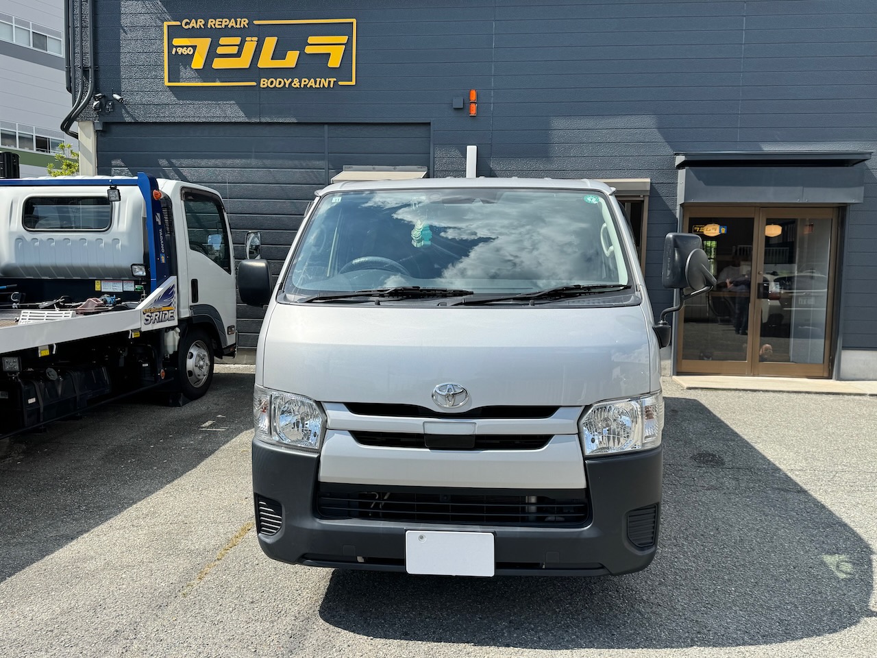 茨木市のお客様 トヨタ ハイエース 左フロントドア 左リアフェンダー 修理のご依頼をいただきました。