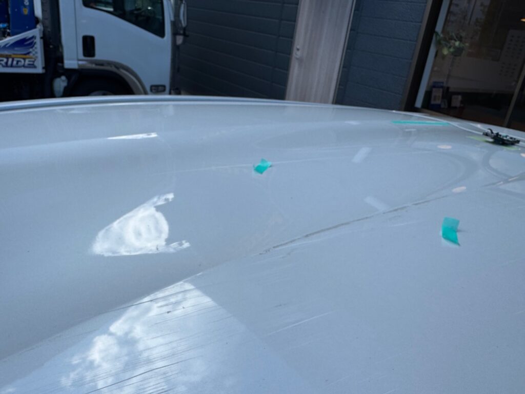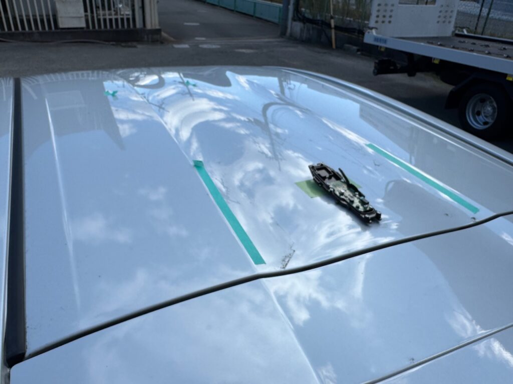 ルーフパネルの凹み傷は 鈑金修理にて対応しました。