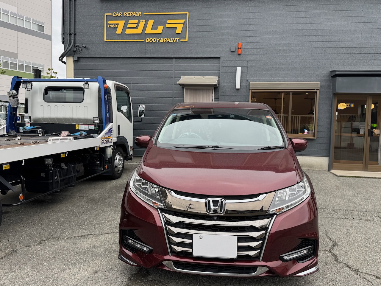 吹田市のお客様よりホンダ オデッセイ スライドドア リアフェンダー 修理をご依頼いただきました。