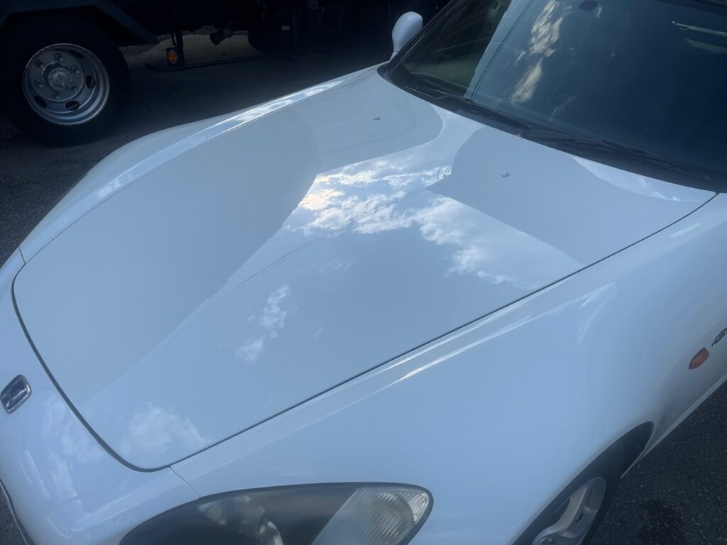 左右のフロントフェンダー、ボンネットの劣化塗装を綺麗に修復することができました。