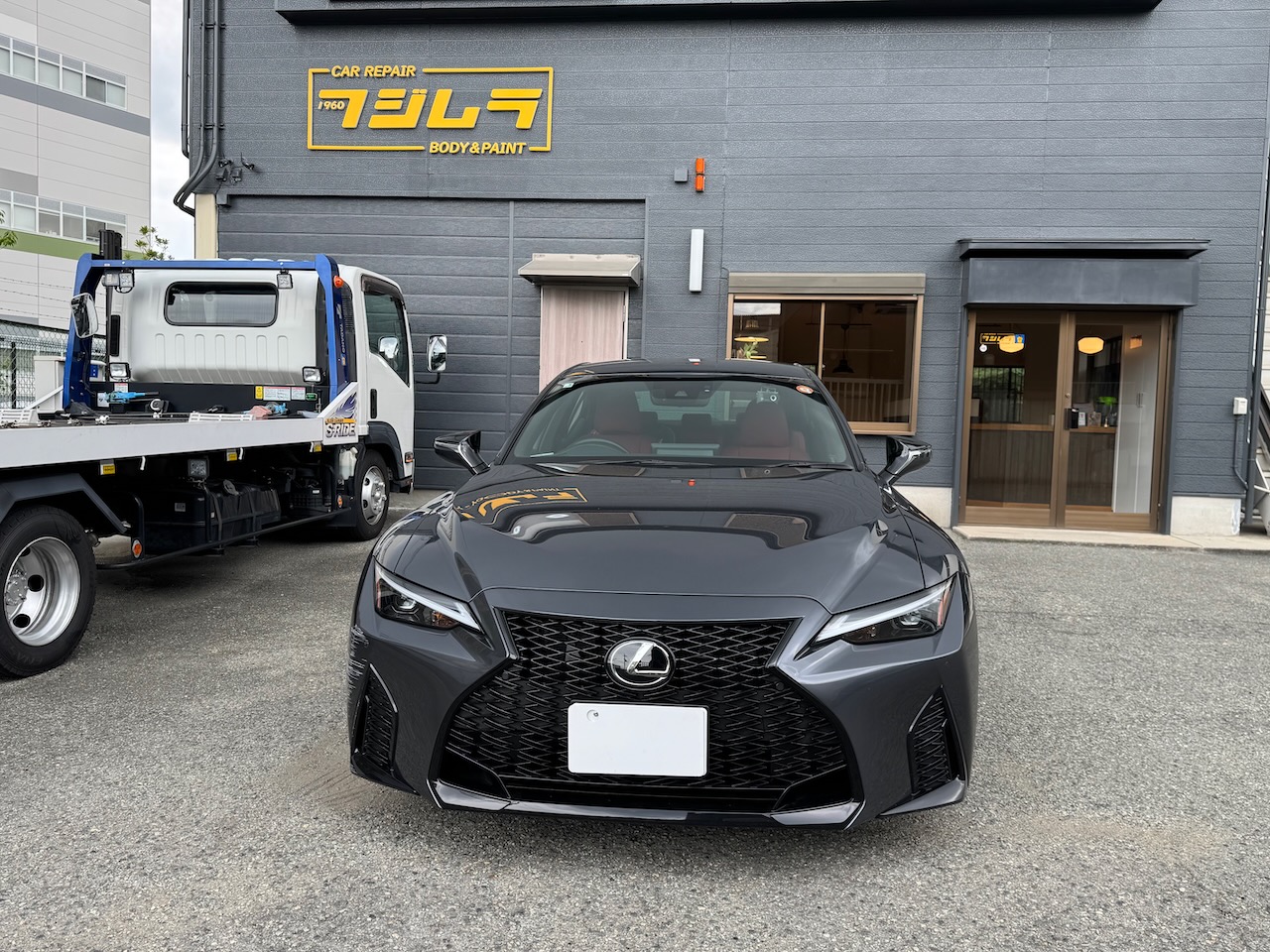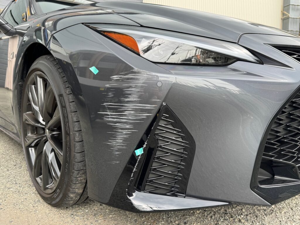 吹田市のお客様 レクサス IS300 フロントバンパー リアバンパー 左リアフェンダー 修理のご依頼をいただきました。