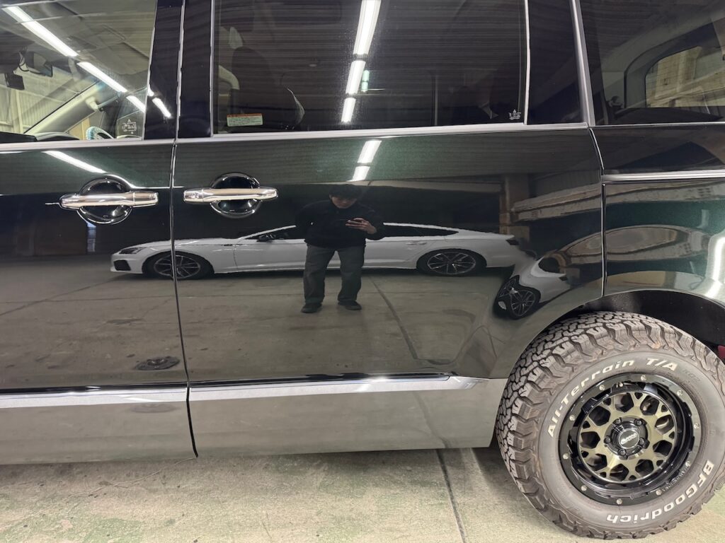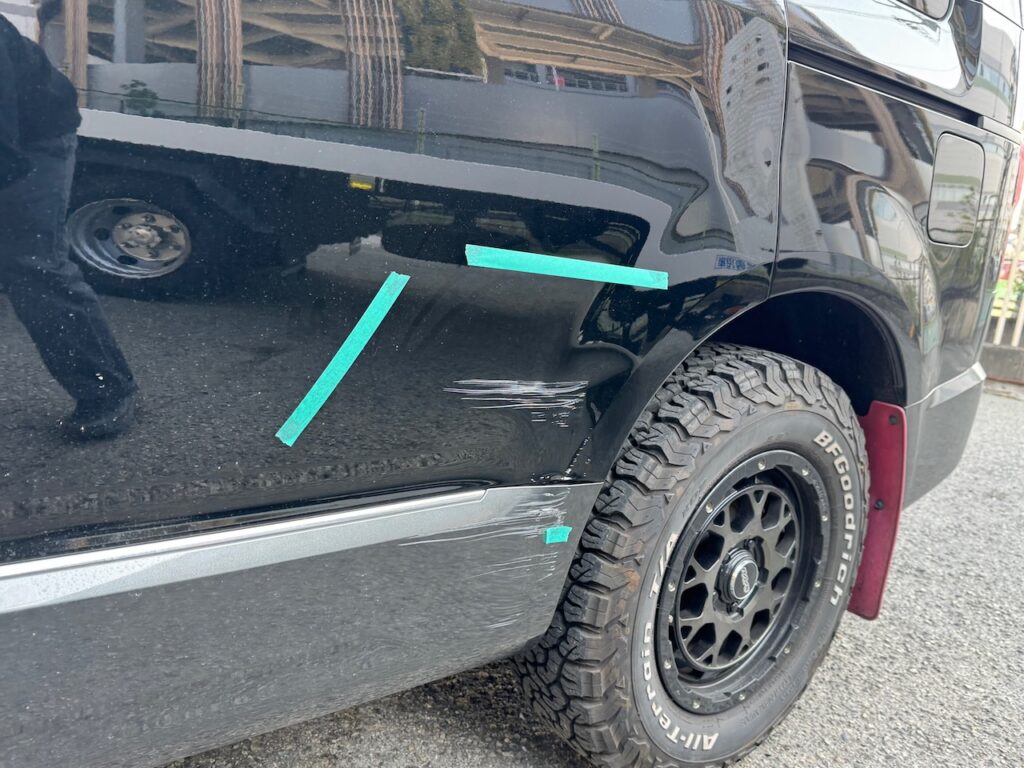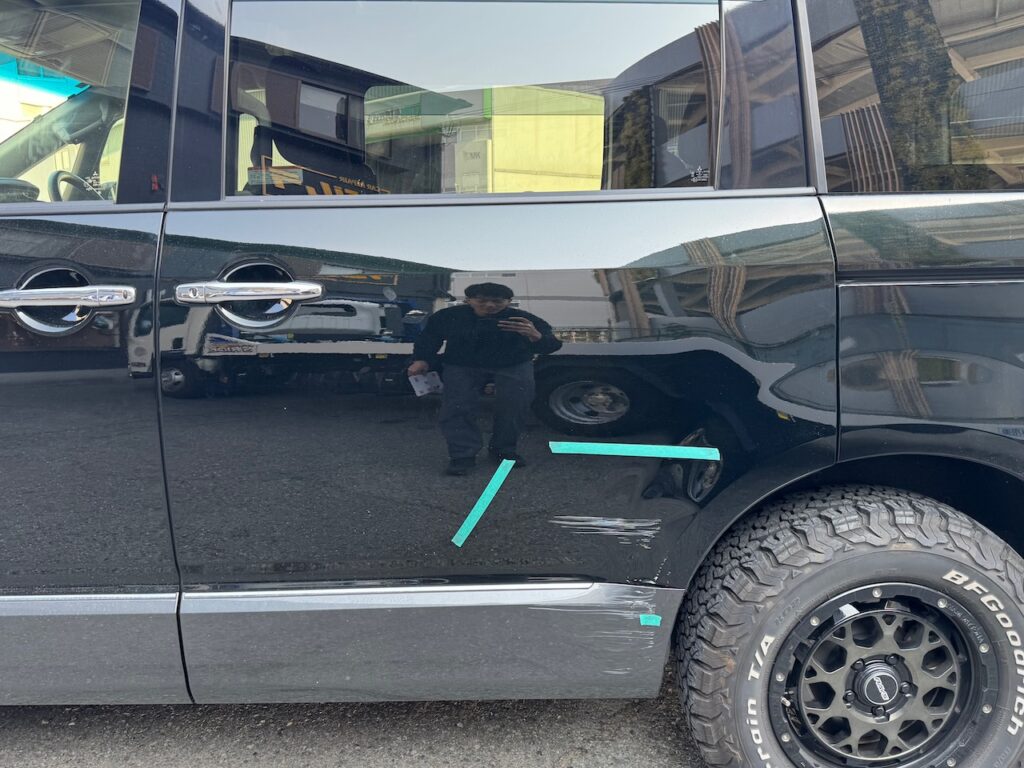 吹田市のお客様よりご依頼|三菱 デリカ D:5 左 リアドア フロントバンパー 修理