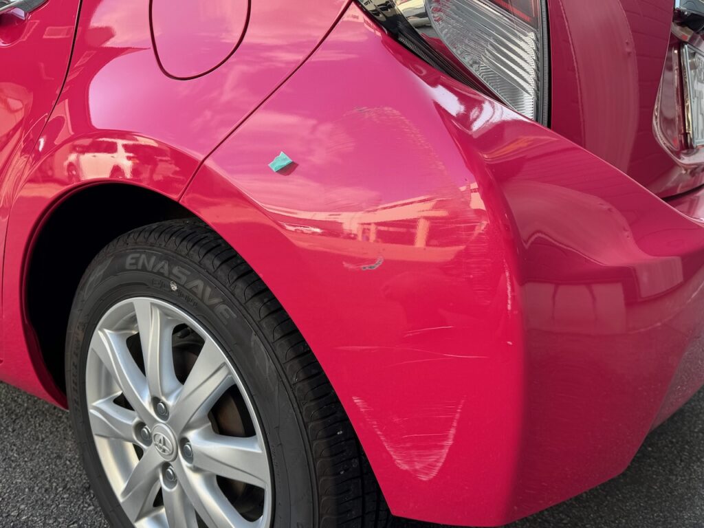 吹田市のお客様よりご依頼|トヨタ アクア リアバンパー 修理