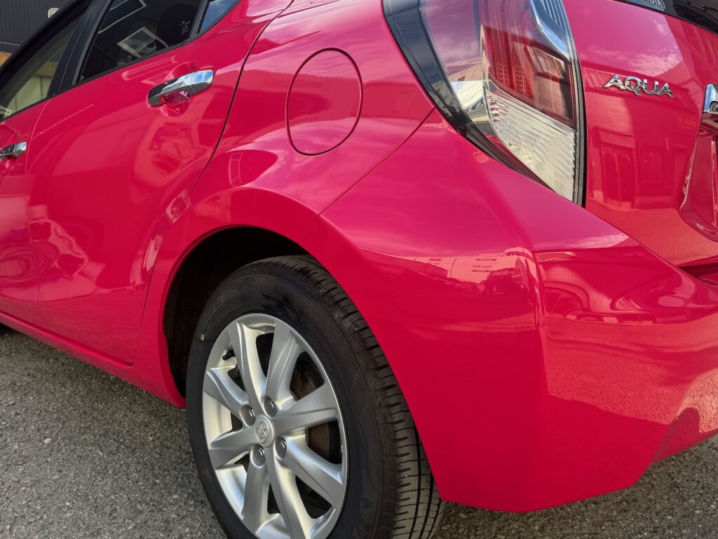 吹田市のお客様よりトヨタ アクア リアバンパー 修理 をご依頼いただきました。