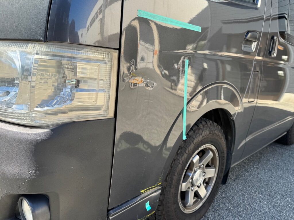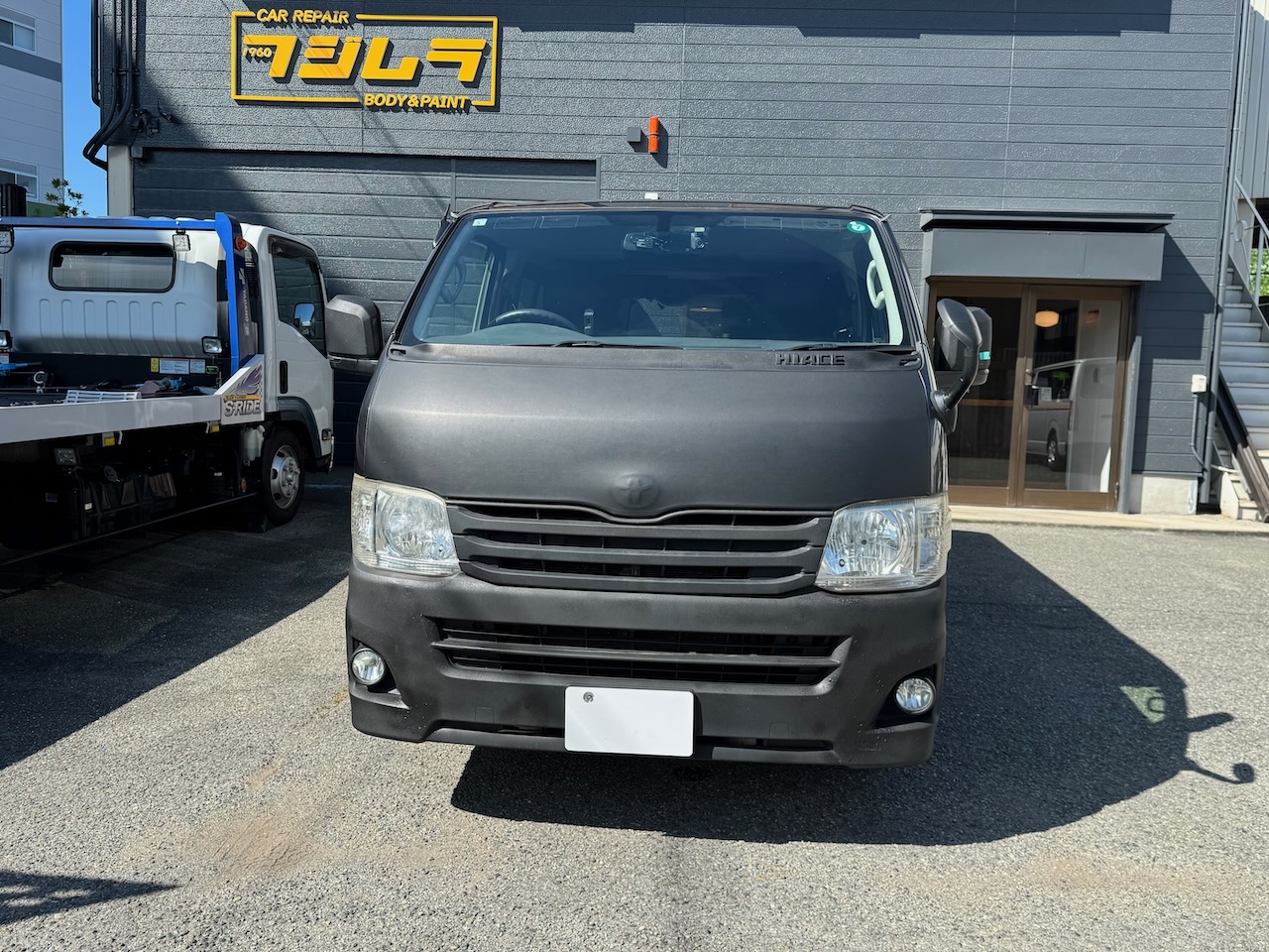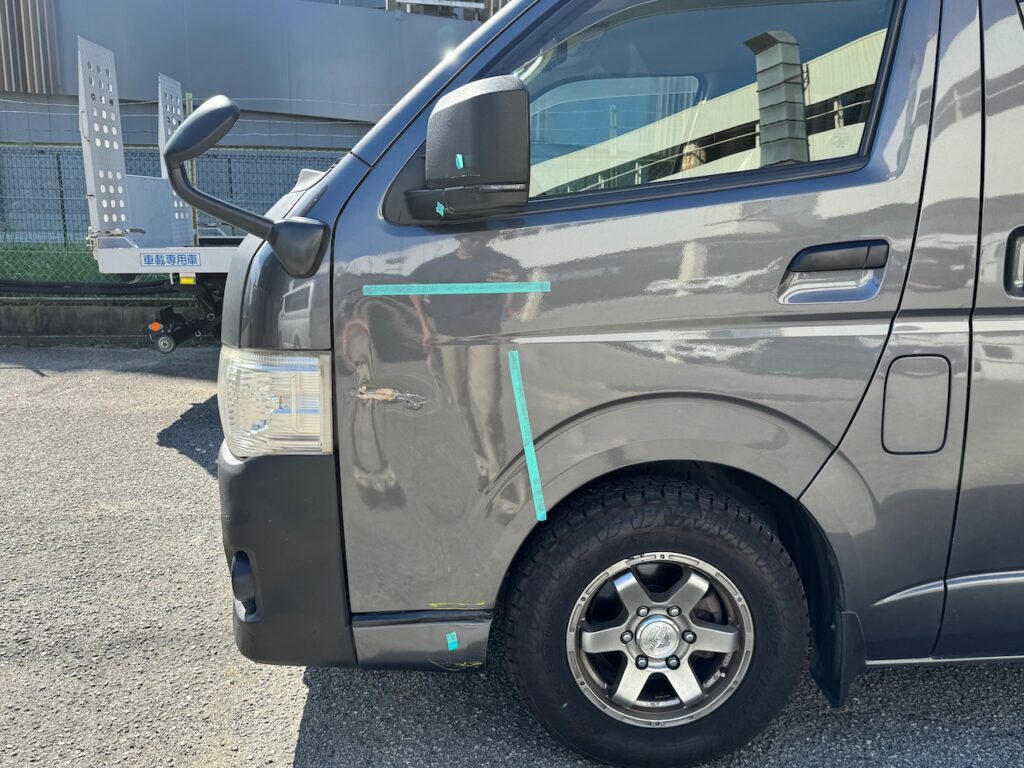 吹田市のお客様 トヨタ ハイエース 左フロントドア 修理のご依頼をいただきました。