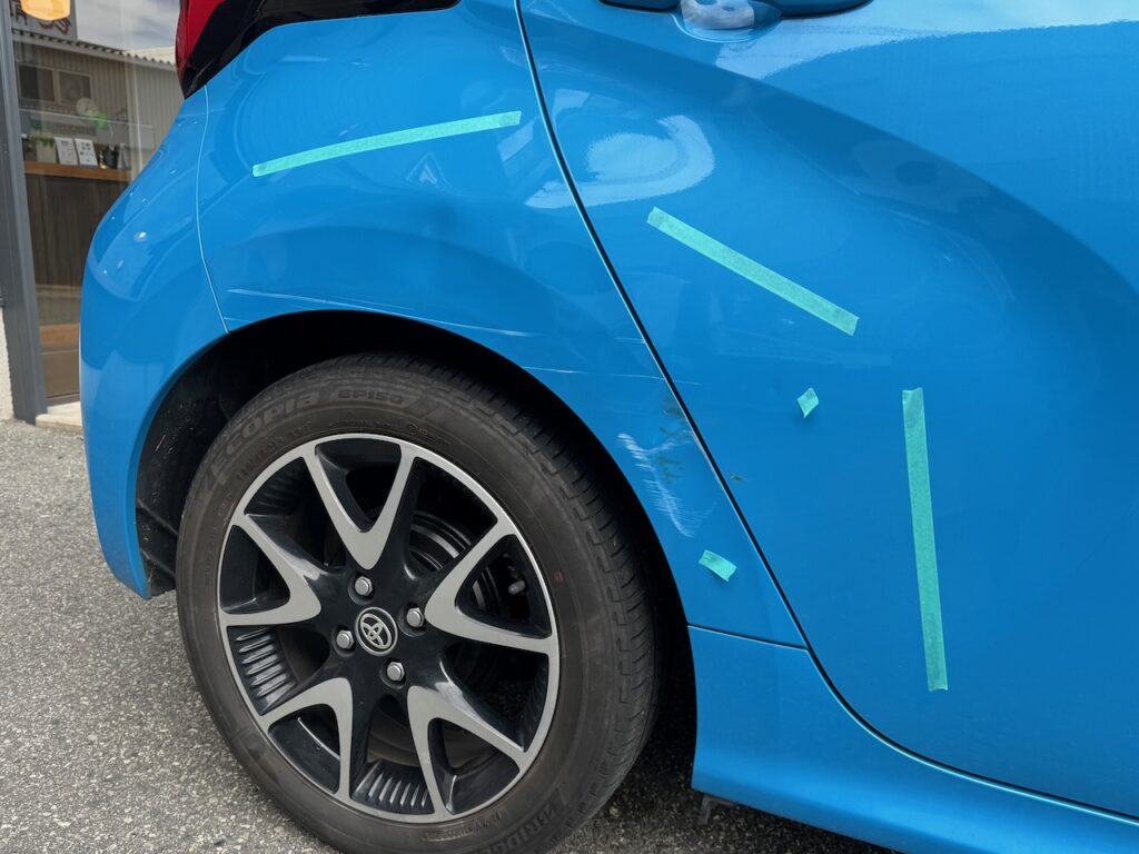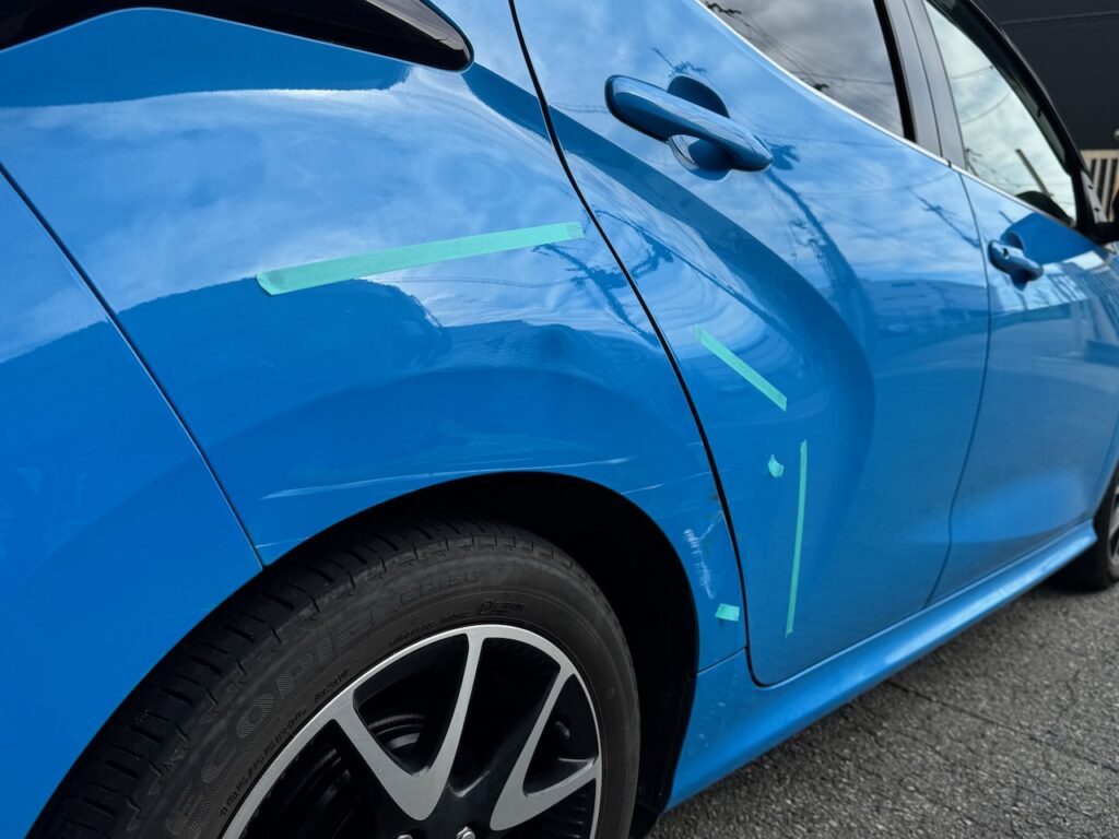 茨木市のお客様よりご依頼|トヨタ ヤリス リアドア・リアフェンダー 修理
